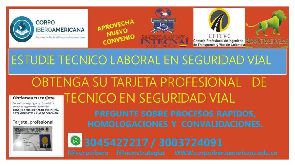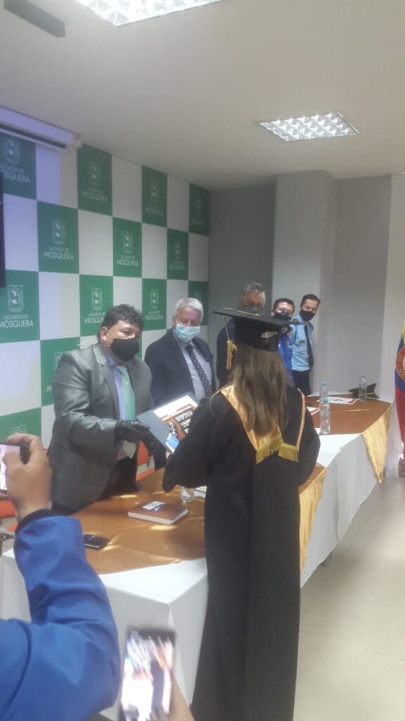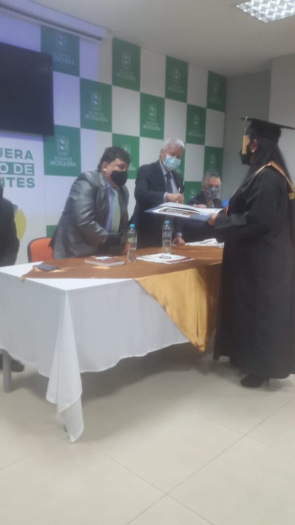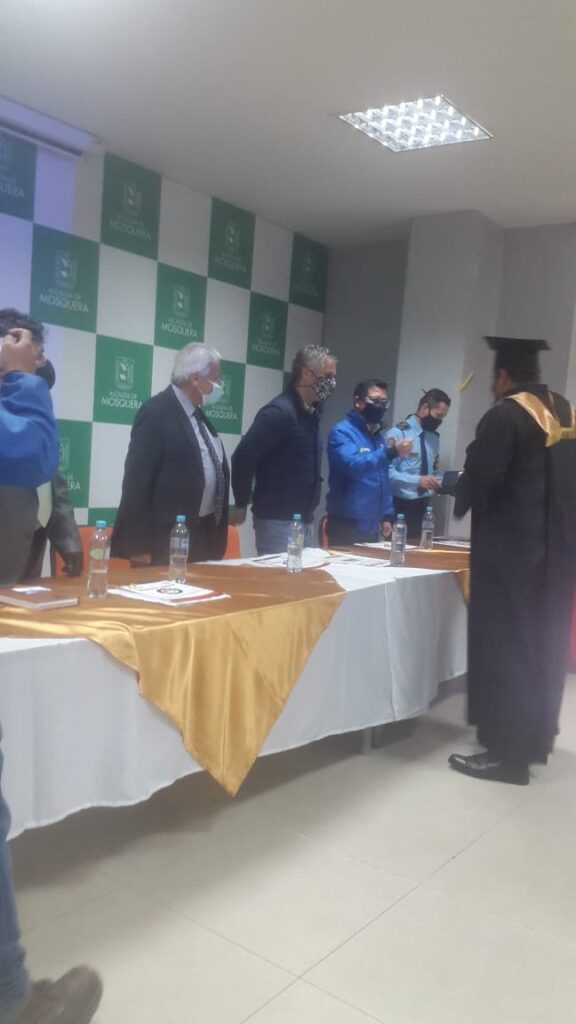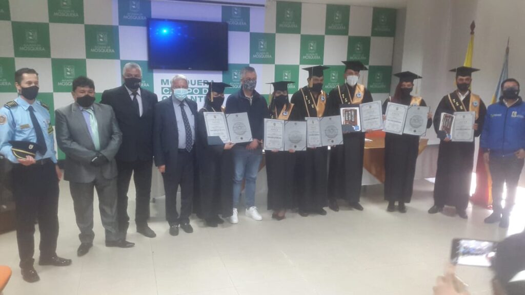 En primer orden, un personal adscrito a la secretaría de Tránsito del municipio de Mosquera-Cundinamarca, obtuvo doble titulación como Técnico Laboral en EDUCACIÓN VIAL y Técnico laboral en AUXILIAR DE TRANSPORTE, ceremonia que contó con la presencia del Dr. GIAN CARLO GIROMETTA, alcalde del municipio de Mosquera, el secretario de movilidad de Mosquera Sr. DIEGO CAJAMARCA, IT. de tránsito JHON FREDY REYES, ING. JAIRO HERRERA MURILLO presidente de ASECARGA, Dr. HECTOR ANGEL PRADA director ejecutivo de CORPOIBEROAMERICANA Y CORPOVEHICULOS, ING. EDUARDO PRADA coordinador vial, graduandos e invitados.
